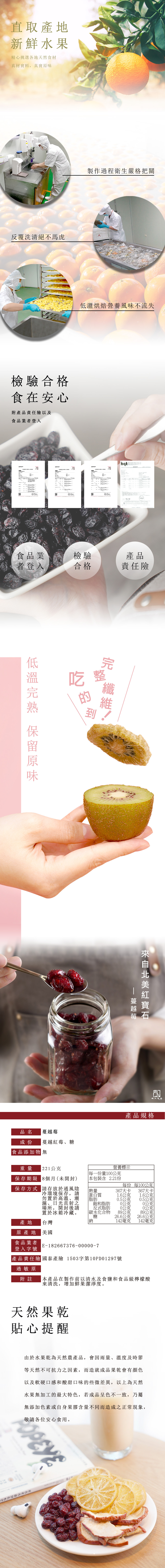 採低溫烘培,保留完整飽滿新鮮顆粒,無添加防腐劑以及色素,可安心食用