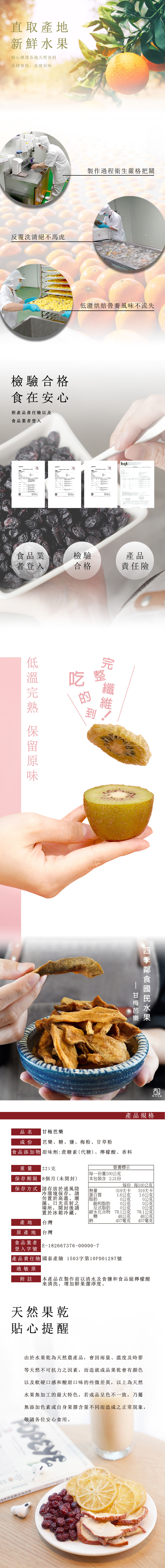 由於水果乾為天然農產品,會因雨量、溫度及時節等天然不可抗力之因素,